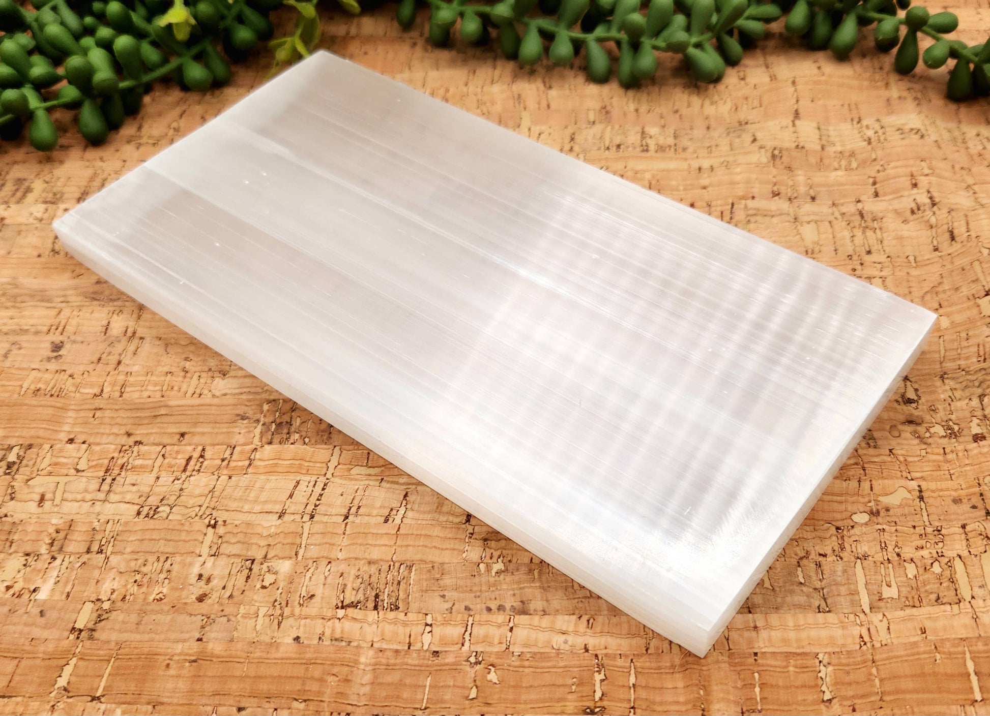 Selenite Charging Bar/Plate - Plain - Approximately 9 1/2 by 5 by 1 inch To use selenite charging plates, place your crystals on the plate & leave them there for at least 6-12 hours. Selenite is believed to have cleansing properties that can clear negative energy & recharge other crystals. The plate works by amplifying the natural vibrations of the selenite, which helps restore balance & boost the energy of the crystals placed on it. *Sold per piece *Approx. size: 20 x 10 x 1cm *All natural semi-precious gemstone -This picture is a representation of the type and quality of the gemstone you will be receiving. As you know, there are slight variations due to the natural character of this product. -All information about the metaphysical properties of crystals is for reference only. It is a combination of research on how gemstones have been used by different cultures today & throughout history. We do not recommend using crystals as a substitute for conventional medical advice.