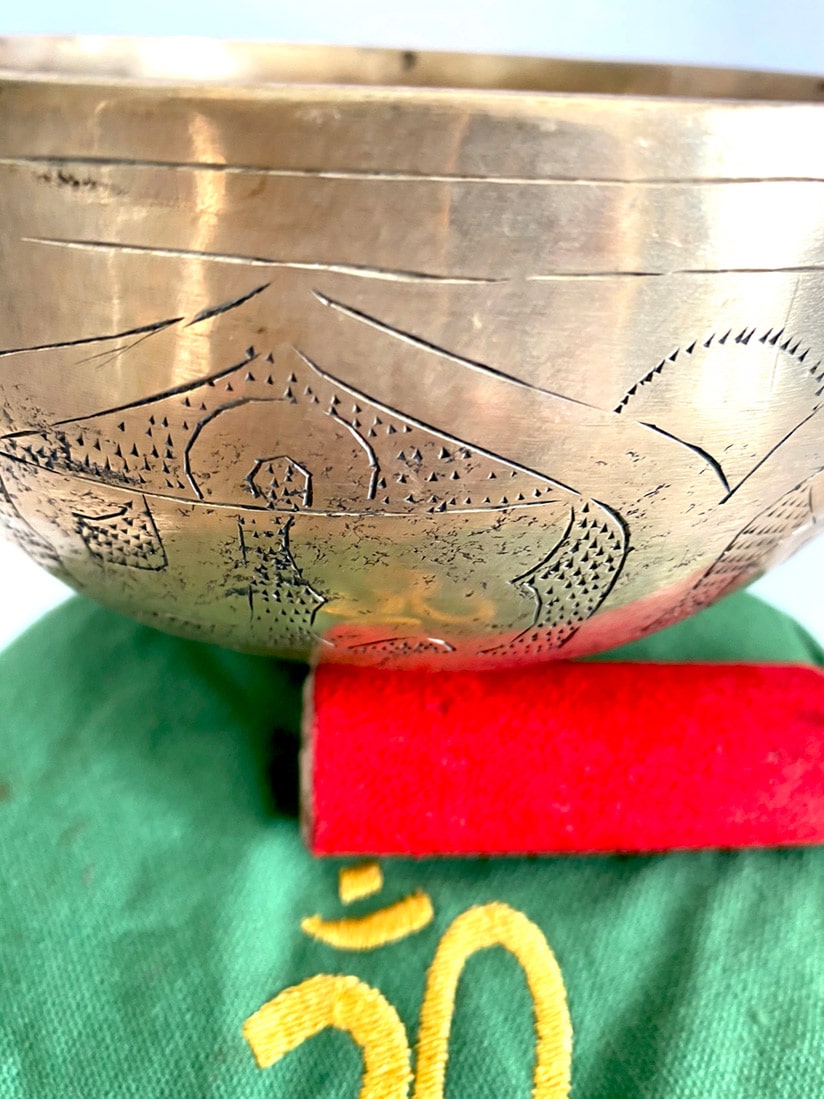 Experience the powerful vibrational healing of our A/E Note Himalayan Singing Bowl. Struck like a gong, it resonates at E 675 Hz (Solar Plexus Chakra); when sung on the rim, it reaches A# 238 Hz (Third Eye Chakra). Measuring 6.5" in diameter and handcrafted with precision, it includes a free striker and cushion. Ideal for meditation rituals, this bowl balances intuition, power, and clarity, grounding you in a profound state of peace.