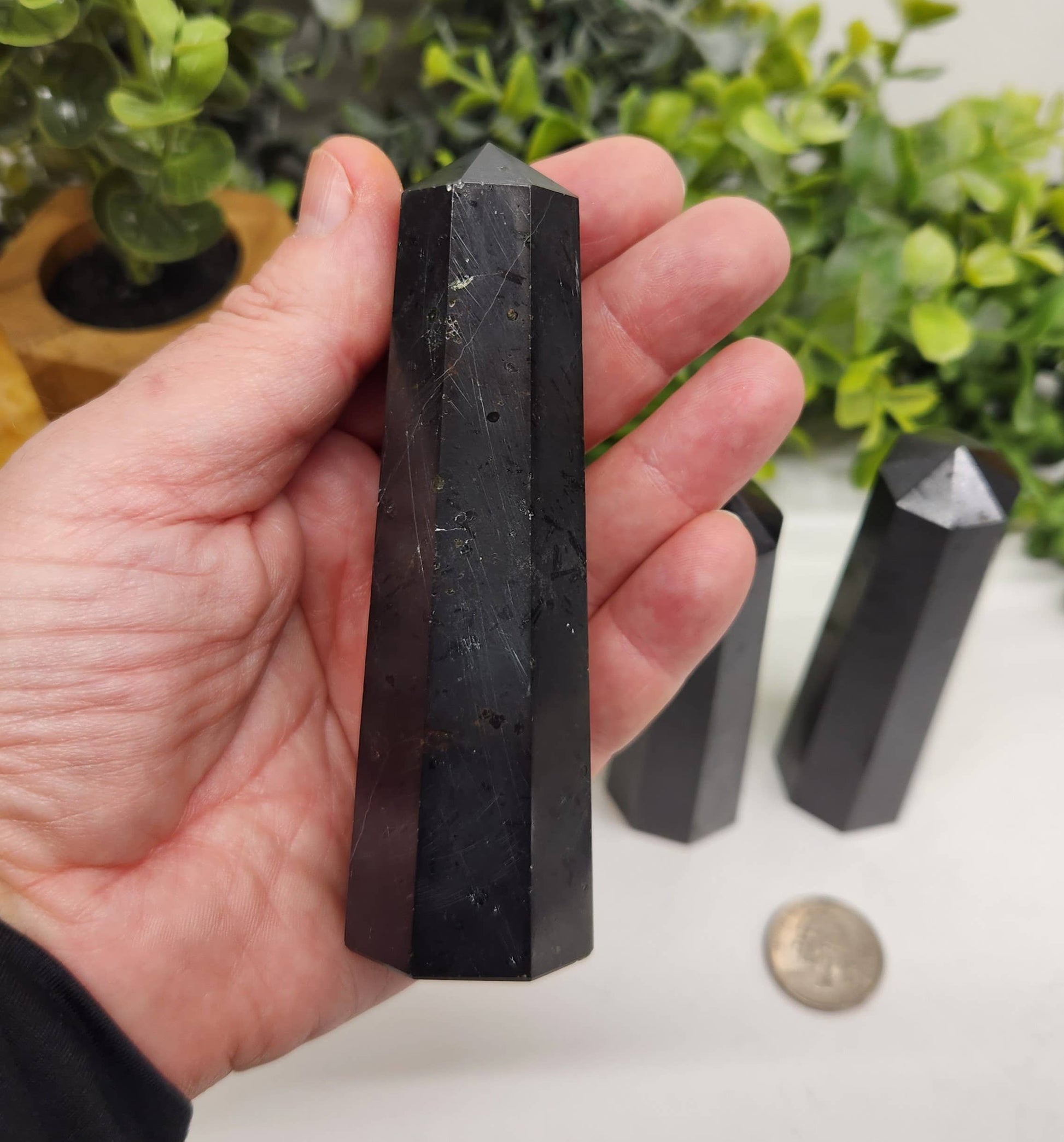 Black Tourmaline 8-Faceted Tower (Approx. 8.9-9.5cm)