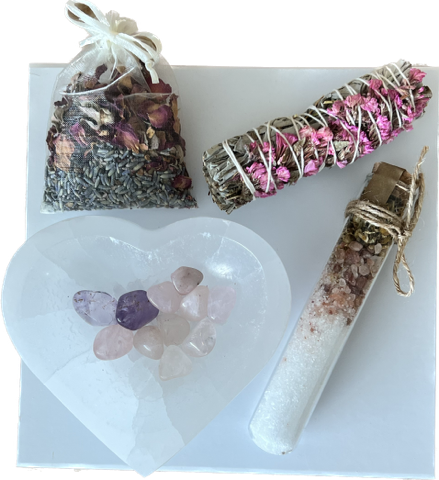 The LOVE Gift Box is the ultimate feel-good gift for your loved ones, filled with carefully selected items that promote love, peace, and healing. This box includes a variety of items known for their energetic properties, perfect for self-care or gifting to someone special.